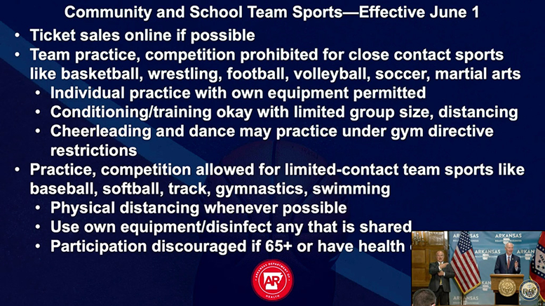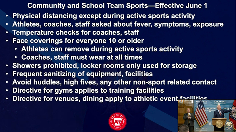 guidelines for which sports would be allowed to resume activities and