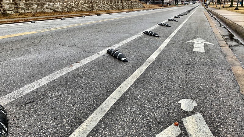 bike lanes were added and painted and bollards were added all along
